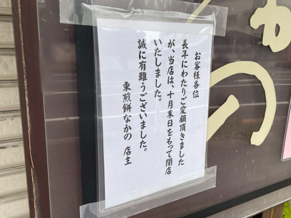 お店の方にお聞きしたところ、創業から50年以上こちらで営業をされていたそうですが、2024年6月30日をもって閉店されたとのことでした。