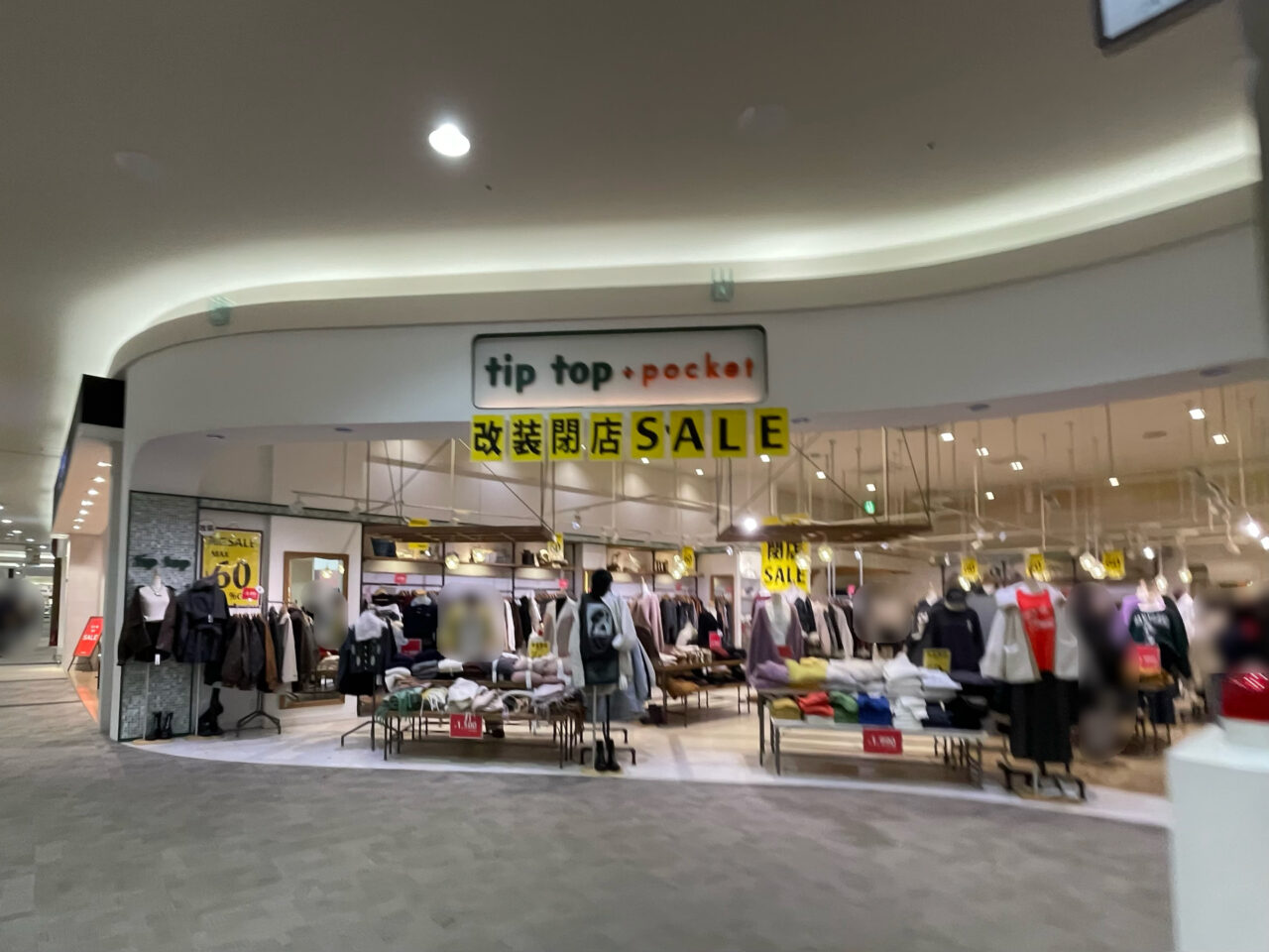 【高崎市】イオン内のアパレルショップ「tip top +pocket イオンモール高崎店」が店舗改装のため閉店セール中。リニューアルオープンは2026年春頃の予定です。