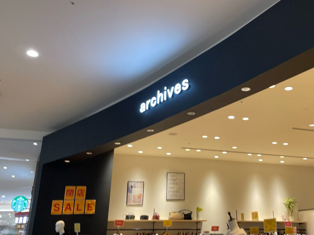 【高崎市】2階スタバのお隣のアパレルショップが…。イオンモール内の「archives イオンモール高崎」が2026年1月31日をもって閉店予定です。