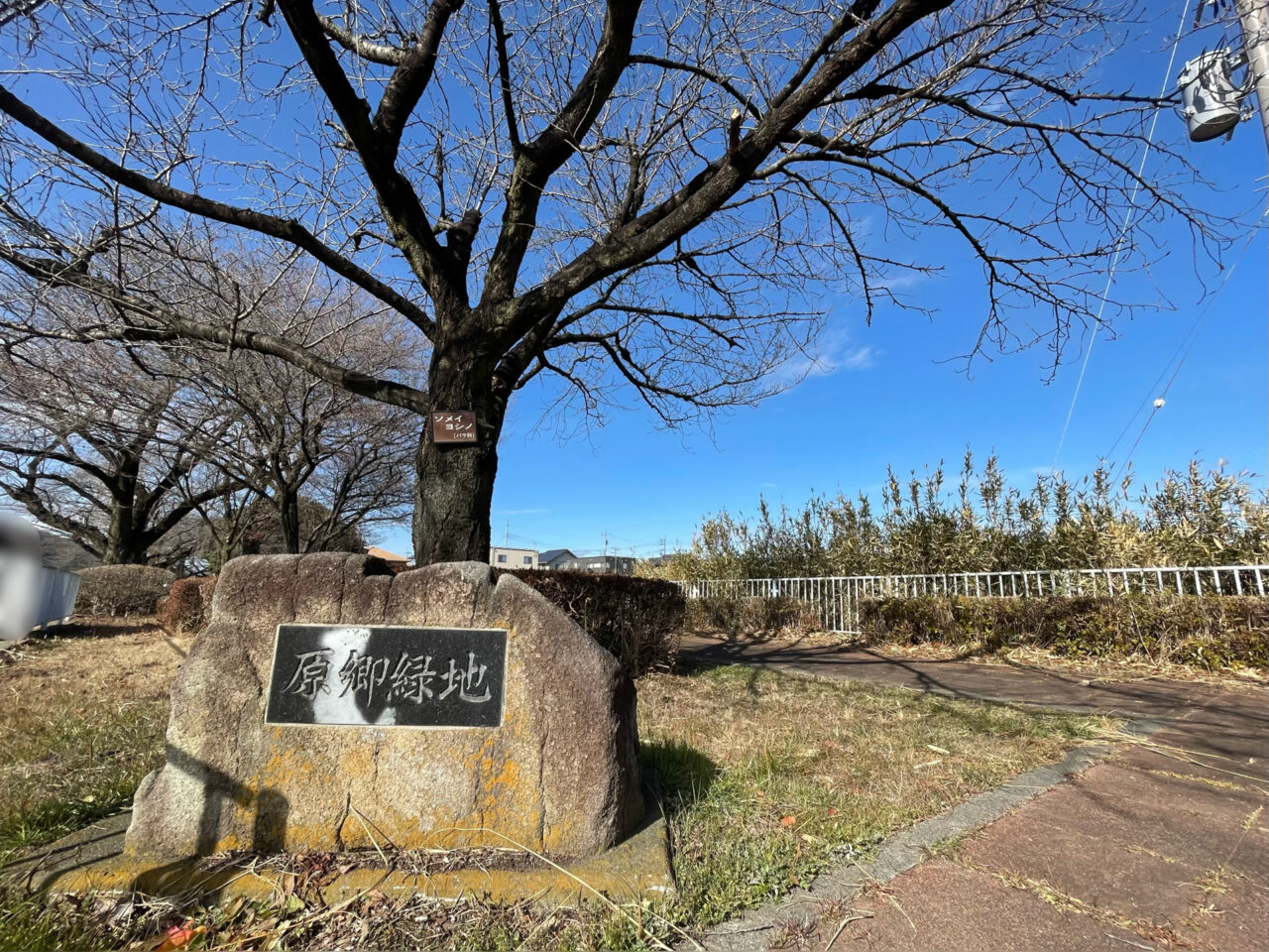 水路沿いの緑地帯「原郷緑地」、