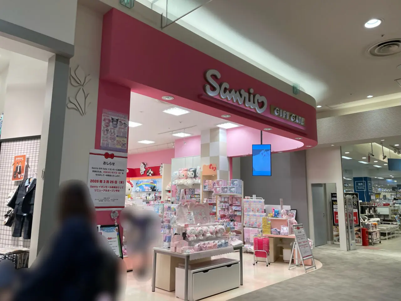 【高崎市】しばしのお別れ。イオンモール内の「Sanrio Gift Gate イオンモール高崎店」が、店舗リニューアルのため2026年3月8日に一時閉店となります。