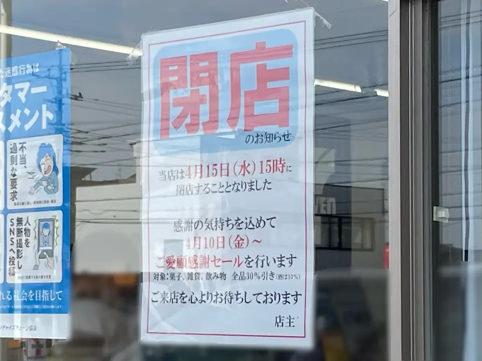 店頭には、閉店のお知らせが掲示されていました。2026年4月15日(水)15時をもって閉店することになったそうです。