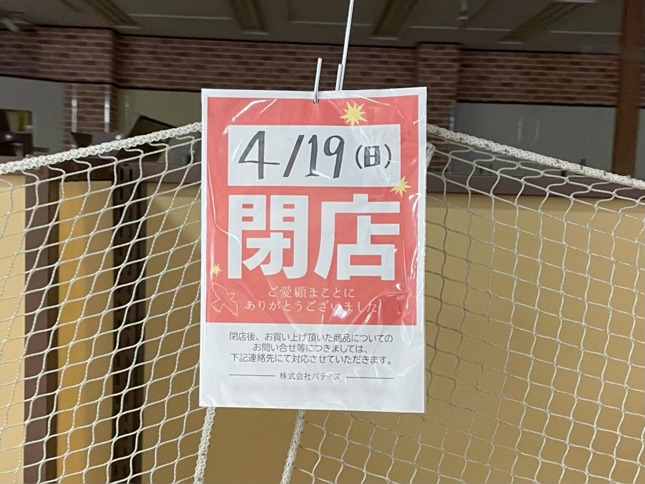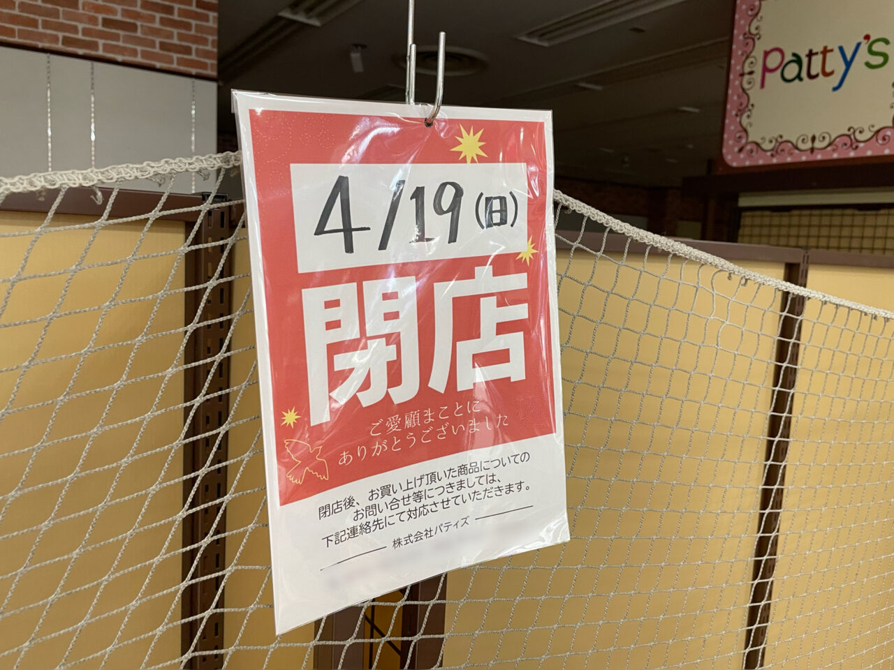 【高崎市】アピタ内にあったバラエティーショップでしたが…。2026年4月19日、矢中町の「パティズ 高崎店」が閉店しました。